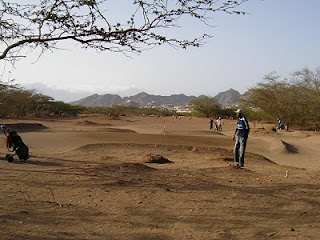 Mindelo tem um Clube de Golfe, que se situa às portas da cidade num vasto terreno de terra batida, pontuado pelo verde poeirento das acácias. Em 1920 chamava-se St. Vincent Golf Club, em 1969 passou a Club Anglo-Português e em 1975 Clube de Golfe de S. Vicente. Improvável alegoria de Mindelo, este clube sintetiza a história e o carácter da cidade e da ilha.