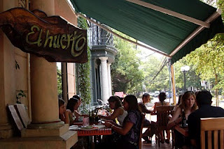 Quando se dobra a rua Namur é uma manada de elefantes que encontramos pela frente. Santiago do Chile é uma cidade improvável. Nas noites quentes de Janeiro as buganvílias coloridas emaranham-se pelas fachadas em mármore das Vilas com portões de aço bordados há cem anos. A cidade tem pátios, jardins, cantos com cafés onde famílias inteiras comem "empanadas", e os adultos bebem vinho chileno e as crianças sumos de anona e de morango ou saboreiam sorvetes de muitos sabores. No Emporio La Rosa e em letras cor de rosa está escrito nas lousas penduradas nas paredes: le ofrece, e depois a verde, frescas ensaladas, deliciosos sandwichs, jugos naturales, bebidas, té - café.