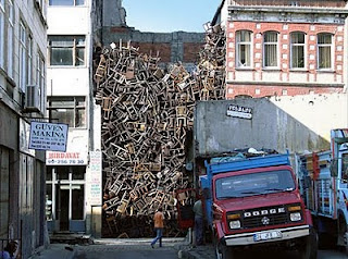 Se falamos das pessoas, o que podemos dizer da arquitectura? Alguns prédios dos finais dos anos 60, inícios dos anos 70 – a modernidade colonial – uns (muito poucos) novos prédios e uma imagem retida: o centro velho de Bissau faz lembrar a velha Havana (a do centro e não a da marginal) com as cores, a estreiteza das ruas, as varandas e as portadas magníficas e lindas do tempo áureo do caju.