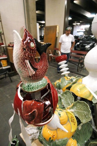 Também na garagem, numa oficina preparada para o efeito, o artista Barrão trabalha na sua instalação Natureza Morta, que estará exposta a partir de 18 de Junho, no Jardim Gulbenkian, junto ao lago, do lado nascente.