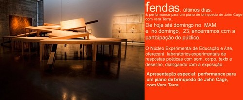 São os últimos dias, no Museu de Arte Moderna (MAM) do Rio de Janeiro, da mais recente exposição “Fendas” do artista brasileiro José Bechara, que em Junho de 2009 participou no Próximo Futuro com a instalação de um dos seus projectos de maior fôlego: “A Casa”.