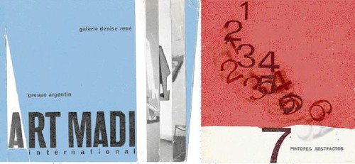 Composición de 1958 de Gyula Kosice para 'Grupo argentino Internacional Art Madi' y, a la derecha, portada de '7 pintores abstractos' (1957). / [AUTFOTO]collection gyula kosice / galería pizarro