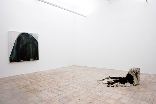 The exhibition comprises sculptures and drawings made with cowhide and cow hair, and paintings in oil on canvas. Unlike the distinctive figurative forms that the artist has previously made familiar to us, the drawings and paintings are abstract and ambiguous. They could also be perceived as parts or fragments of bodies such as bums, elbows, bellybuttons or toes, or the ears, nose, mouth, anus and vagina through which we draw in and expel life forces.