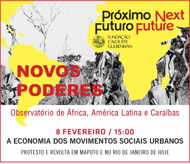 A 4ª edição do Observatório de África, América Latina e Caraíbas é uma co-organização do Próximo Futuro com a Associação Unipop. A primeira sessão, A Economia dos Movimentos Sociais Urbanos, tem lugar no dia 8 de Fevereiro, às 15h, no auditório 3 da Fundação Calouste Gulbenkian. A entrada é livre, mediante inscrição prévia. Todas as informações aqui.