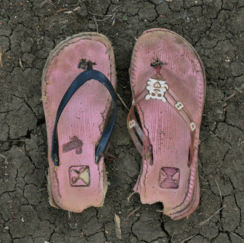 Uma série de fotografias de sapatos de refugiados que saíram do estado sudanês do Nilo Azul e chegaram à fronteira com Sudão do Sul em Maio e Junho de 2012.